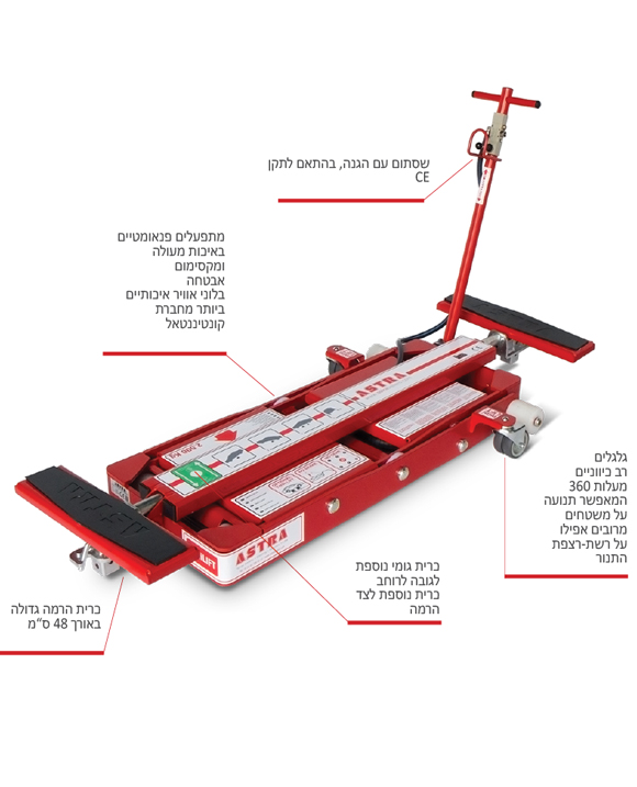 יכולת הרמה: עד 2.5 טון, מתאים לרוב הרכבים, כולל רכבי שטח.