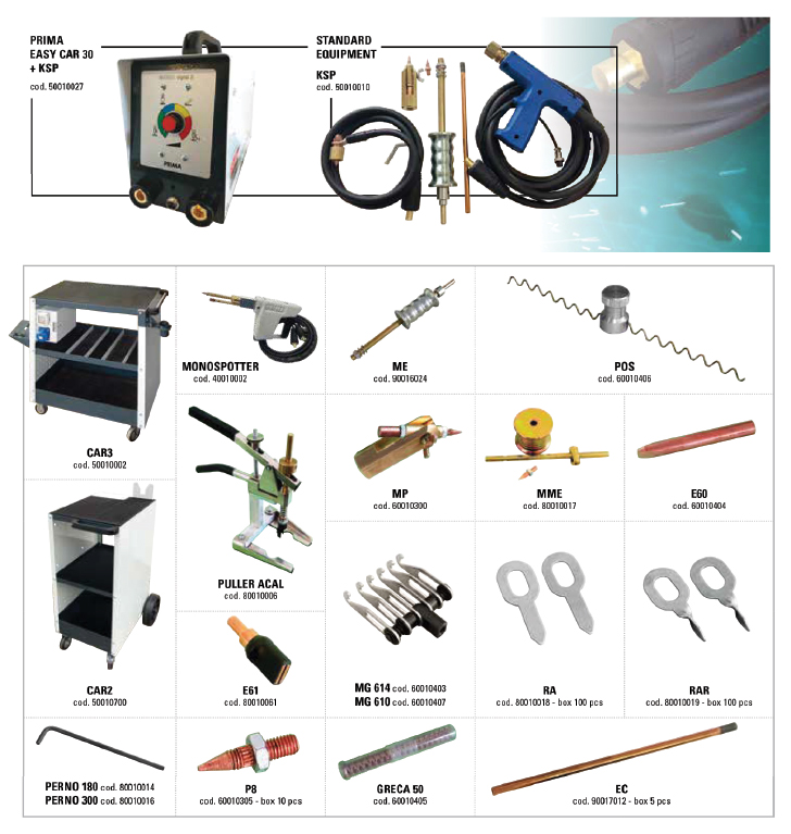המכשיר Prima Easycar 30 הוא מכשיר ריתוך נקודתי (Spotter) המיועד לתיקוני פח ברכב, במיוחד לעבודות קלות ובינוניות. הוא משלב טכנולוגיה מתקדמת עם ממשק ידידותי, מה שהופך אותו לפופולרי בסדנאות רכב ובקרב טכנאים בתחום הפחחות.